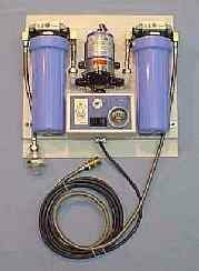 Systems produce 3.7 liters / 1 gallon per minute, 370 liters /100 gallons per day or more using a carbon filtration system and an ultraviolet light disinfection process to produce cleaner and safer drinking water from most fresh water sources. Larger systems from 55 liters / 15 gallons per minute up to 55.000 liters / 15,000 gallons per day are available in many different sizes from stationary to trailer mount systems. |